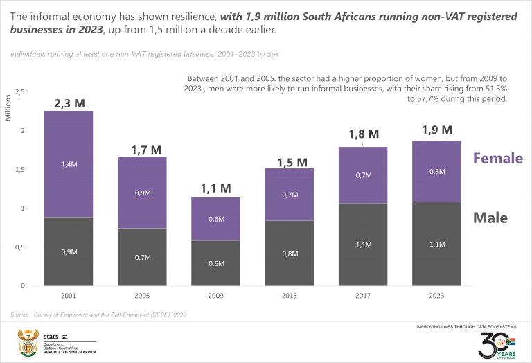 3. Statistics South Africa. 2025. South Africa’s Informal Economy: A Lifeline for Millions. Available at https://www.statssa.gov.za/?p=18255#:~:text=According%20to%20the%20latest%20Quarterly,jobs%20after%20the%20formal%20sector.